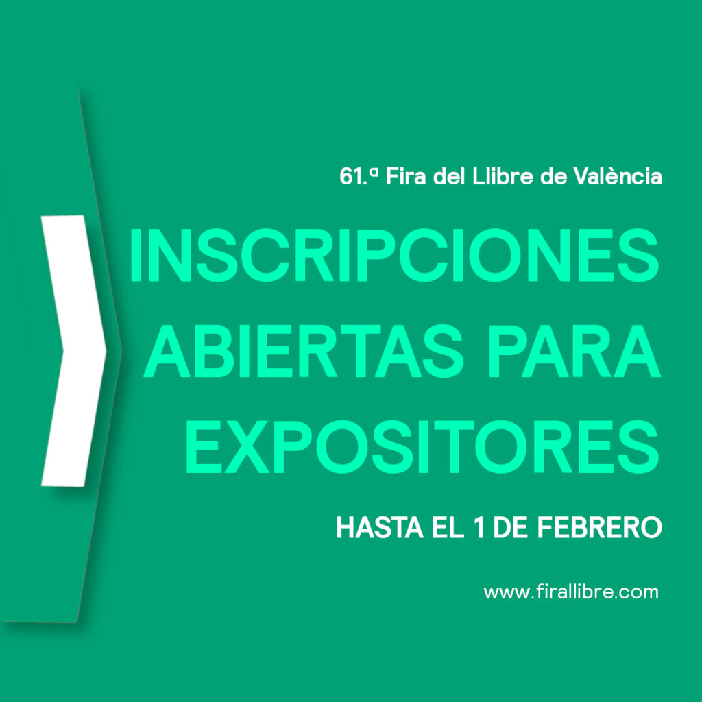 Se han abierto las inscripciones para expositores de la 61 Fira del Llibre de València, que tendrá lugar del 30 de abril al 10 de mayo en los Jardines del Real. Pueden participar librerías, editoriales y distribuidoras. Inscripciones hasta el 1 de febrero en https://firallibre.com.